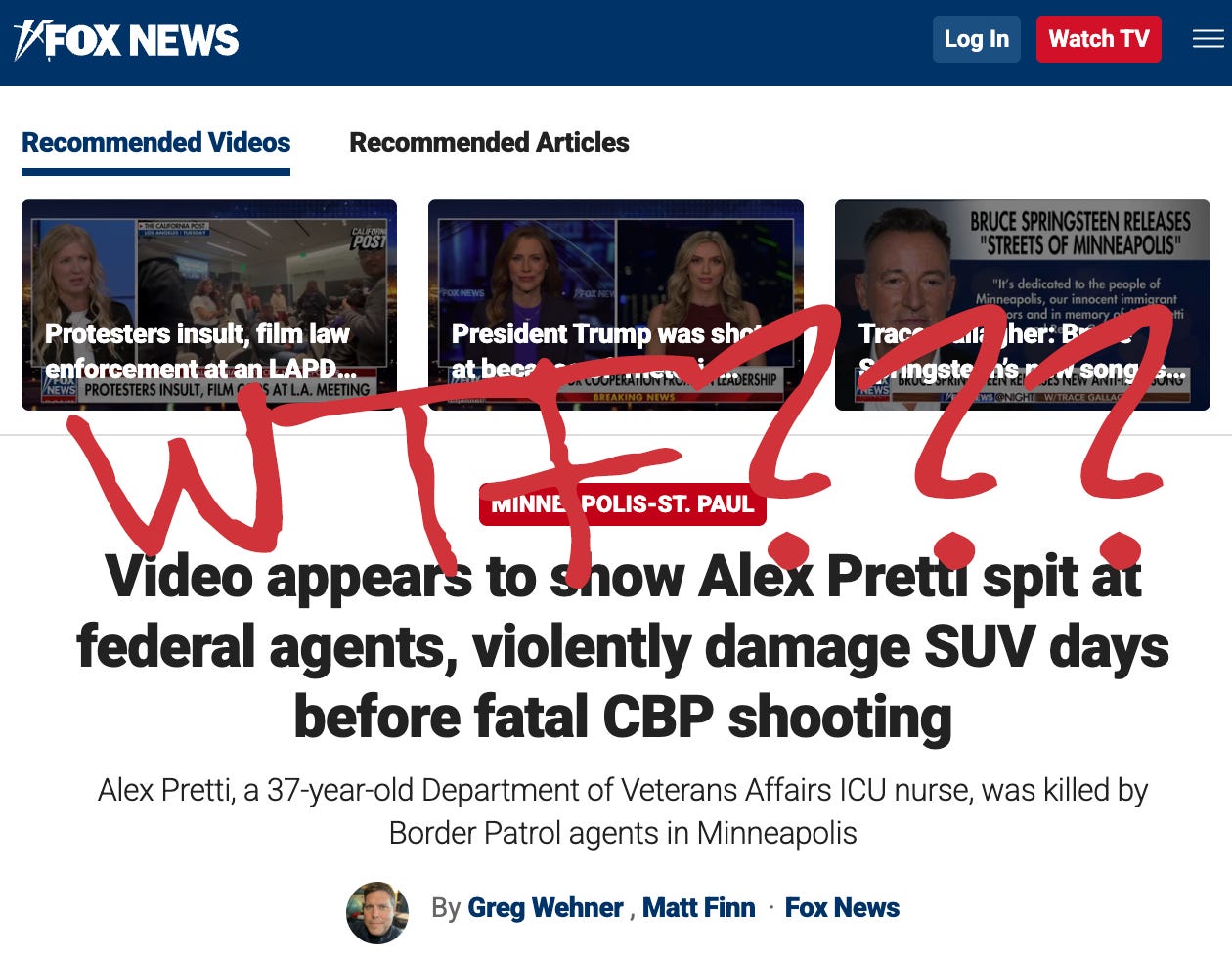 For a few reasons I don’t critique Fox “news” headlines: it’s too easy, it’s a waste of time, and it isn’t even a real news organization but a propaganda wing of the Republican party. But the audacity of today’s headline about Alex Pretti was too much to overlook.